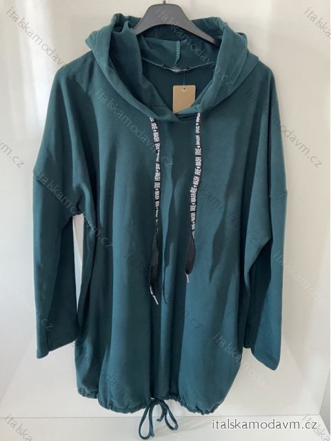 Šaty mikinové s kapucí dlouhý rukáv dámské nadrozměr (XL/2XL/3XL ONE SIZE) ITALSKá MóDA IM422MONETE