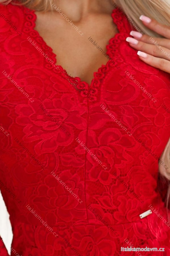 ZBOŽÍ (21839) > 170-16 Čipkové šaty s dlhým rukávom a výstrihom - červené