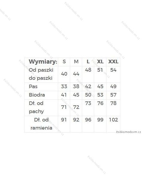 | Z podpazušia do podpazušia | 40 | 44 | 48 | 51 | 54 |