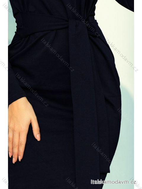 209-4 Šaty so širokým zviazaným pásom - tmavomodrá farba
