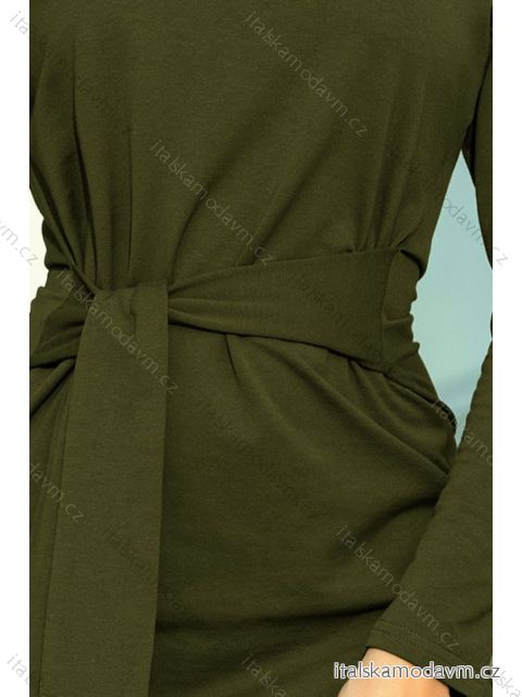 209-5 Šaty so širokým zviazaným pásom - KHAKI