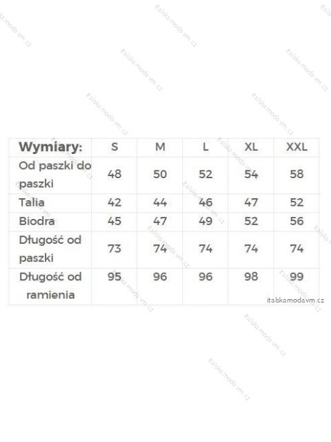| Z podpazušia do podpazušia | 48 | 50 | 52 | 54 | 58 |