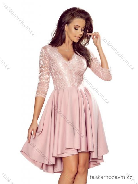 210-11 NICOLLE - šaty s delším hřbetem s krajkovým výstřihem - růžová