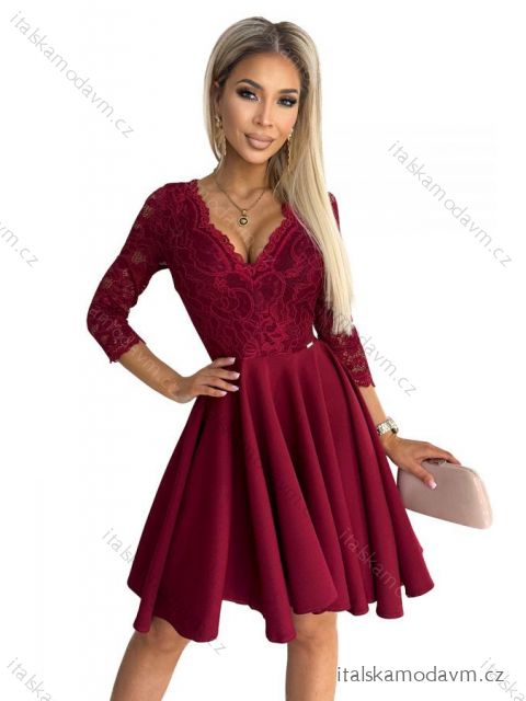 210-15 NICOLLE šaty s delšími zády a výstřihem - vínová barva