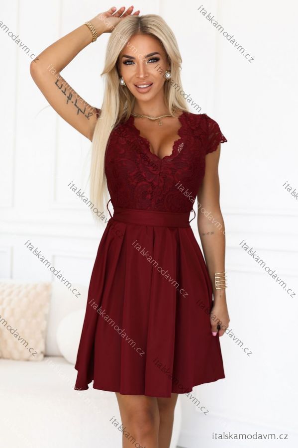 ZBOŽÍ (22174) > 242-5 ANNA Čipkované šaty s výstrihom a rozšírenou sukňou - bordové
