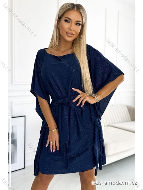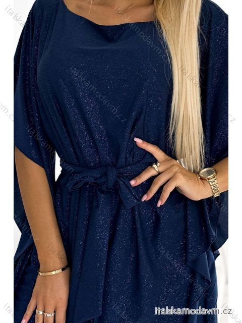 ZBOŽÍ (22629) > 287-25 SOFIA Motýľové šaty so zaväzovaním v páse - námornícka modrá s trblietkami