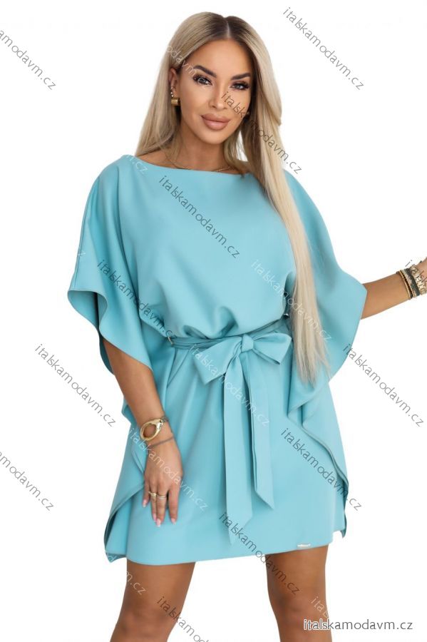 Efekt motýľa v pastelovo tyrkysovej farbe šaty Numoco, ktoré pútajú pozornosť