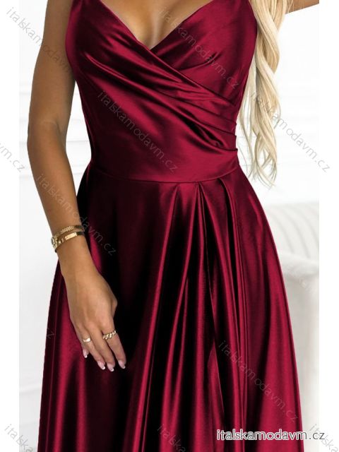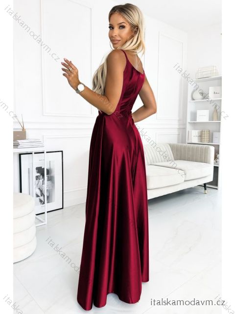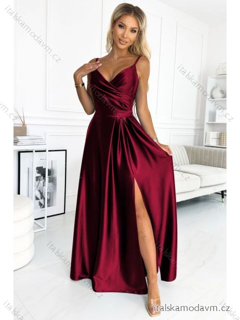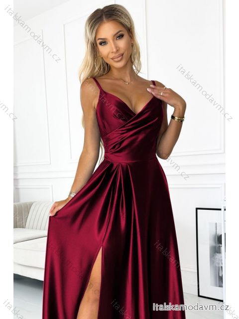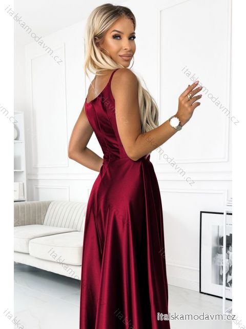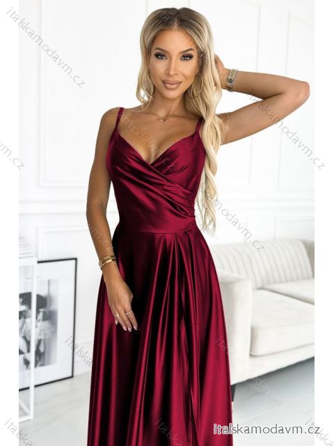 ZBOŽÍ (21607) > 299-13 CHIARA elegantné saténové maxi šaty na ramienka - Bordová farba