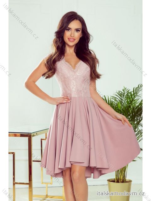 ZBOŽÍ (23040) > oblečenie dámske (18396) > šaty (9741) > Šaty na ramienkach (1719) > 300-1 PATRICIA - šaty s dlhším chrbtom s čipkovým výstrihom - ružová