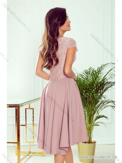 300-1 PATRICIA - šaty s dlhším chrbtom s čipkovým výstrihom - ružová