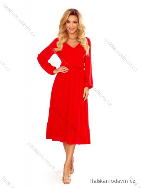 ZBOŽÍ (21605) > 304-3 Šifónové midi šaty s výstrihom a riasením - Červené