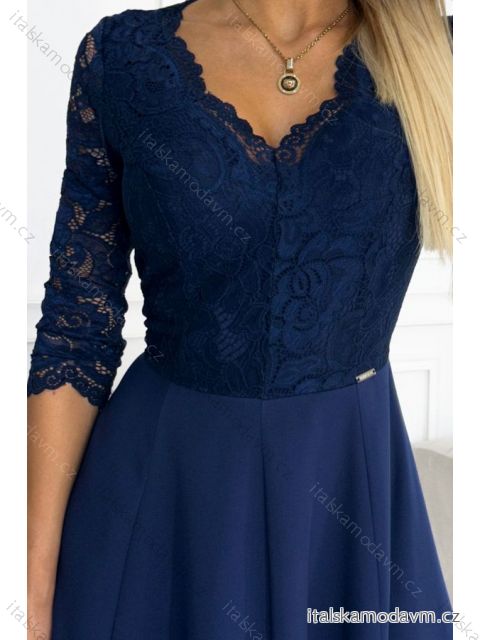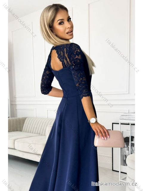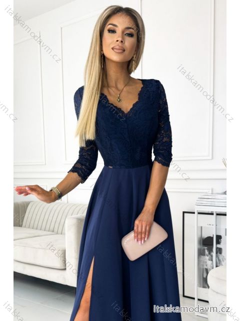 ZBOŽÍ (22987) > Oblečení dámské (18329) > Šaty (9717) > Šaty na ramínkách (1719) > 309-6 AMBER elegantní krajkové dlouhé šaty s výstřihem - tmavě modrá