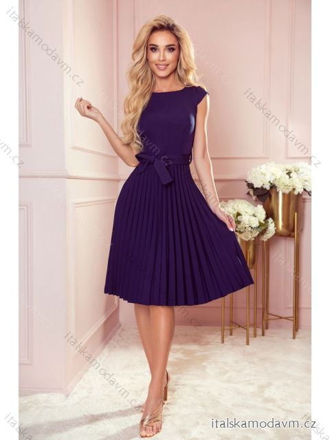 ZBOŽÍ (23040) > Oblečení dámské (18396) > Šaty (9741) > Šaty společenské (2852) > Šaty plesové krátké (800) > 311-12 LILA Plisované šaty s krátkým rukávem - tmavě modré