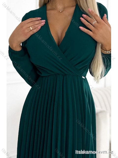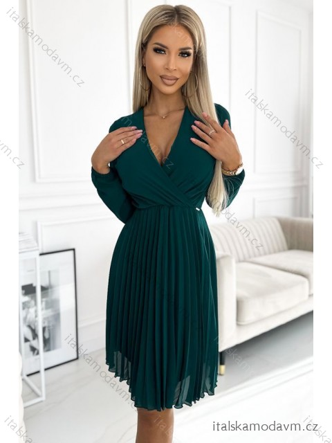 ZBOŽÍ (22801) > Oblečení dámské (18150) > Šaty (9668) > Šaty elegantní (2659) > Šaty elegantní dlouhý rukáv (862) > 313-14 ISABELLE Plisované šifonové šaty s výstřihem - zelené