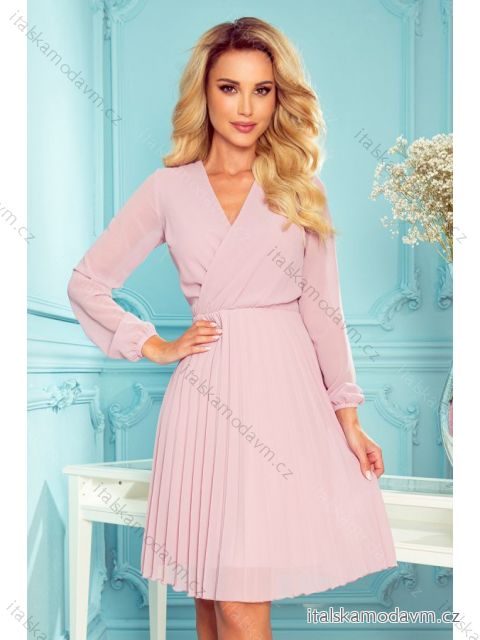 ZBOŽÍ (22040) > 313-4 ISABELLE Skládané šaty s výstřihem a dlouhým rukávem - práškově růžové