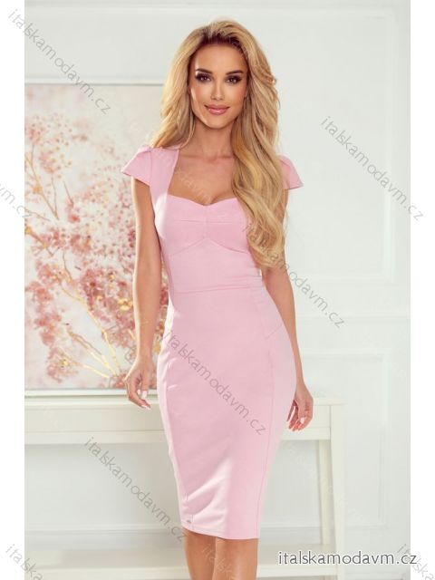 ZBOŽÍ (22987) > oblečenie dámske (18329) > šaty (9717) > šaty elegantné (2663) > Šaty elegantné Kr. ruk. (728) > 318-4 Midi šaty s pekným výstrihom - púdrovo ružové