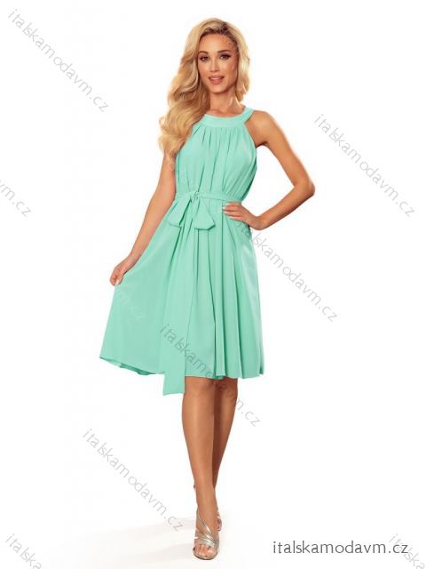 Alizee - šifonové šaty s páskem a zavazováním na zádech. Barva: mátová. Značka Numoco. Polská výroba.