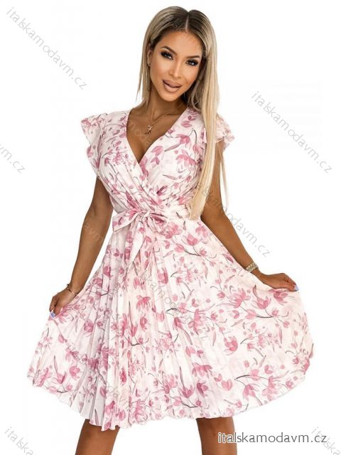 ZBOŽÍ (21968) > oblečenie dámske (17895) > šaty (9465) > 374-6 POLINA Skladané šaty s výstrihom a riasením - ružové kvety