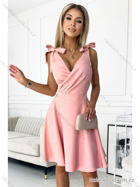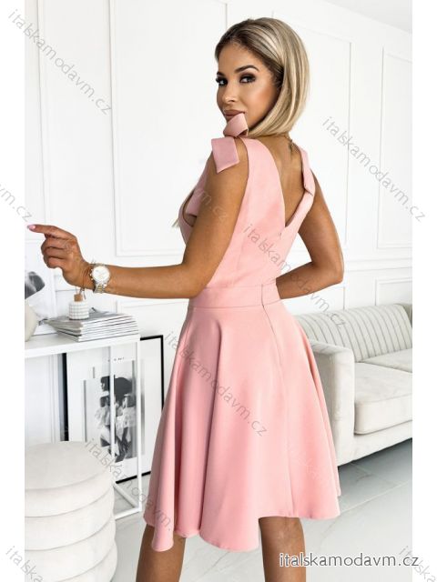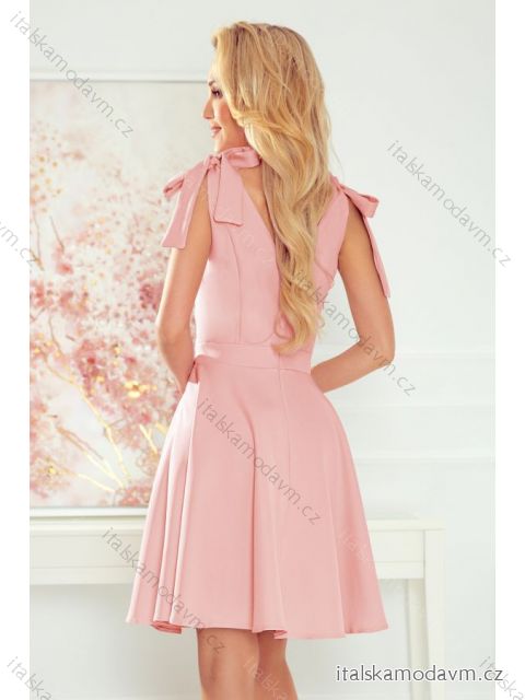 Rosalia - ženské šaty s výstrihom a mašľami na ramenách. Farba: púdrovo ružová. Poľská výroba. Značka Numoco.