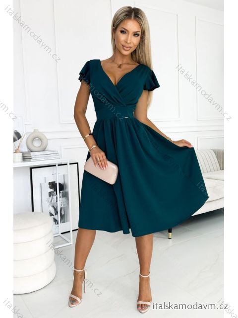 ZBOŽÍ (21908) > 425-1 MATILDE Šaty s výstřihem a krátkými rukávy - zelené