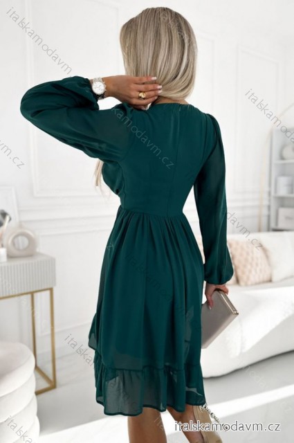 ZBOŽÍ (22304) > oblečenie dámske (18552) > šaty (9801) > Šaty krátke - minišaty (622) > 538-2 MILA Šifónové midi šaty s dlhými rukávmi a výstrihom - zelené