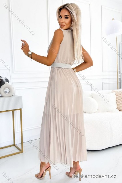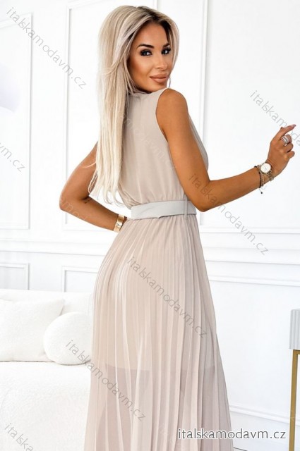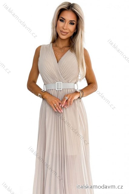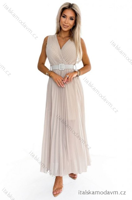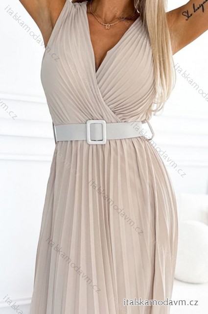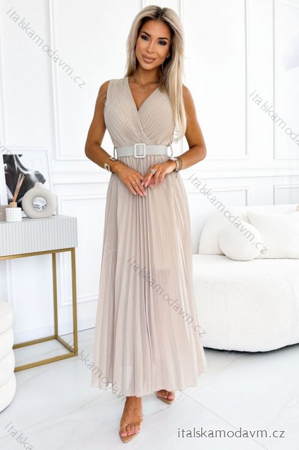 ZBOŽÍ (21637) > 546-1 Skladané šaty so širokým opaskom a výstrihom - Béžová