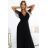 ZBOŽÍ (22043) > 562-3 NASTIA Dlouhé šaty s výstřihem a krátkými rukávy - černé