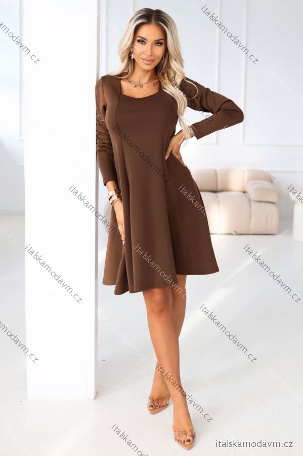 ZBOŽÍ (22167) > oblečenie dámske (18403) > šaty (9751) > šaty elegantné (2727) > Šaty elegantné Kr. ruk. (759) > 574-2 IVANA pohodlné trapézové šaty s výstrihom a dlhými rukávmi - čokoládové