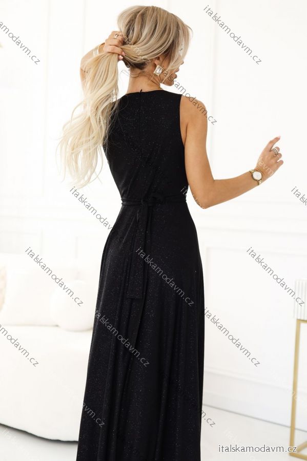 ZBOŽÍ (22833) > 587-1 MONIQUE long exclusive dress with neckline and leg slit - black with glitter
