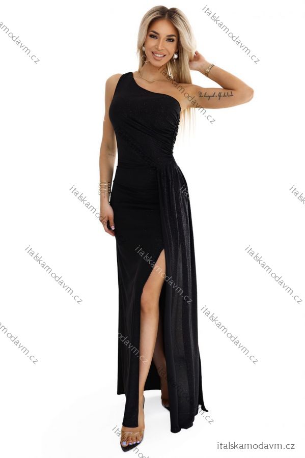 ZBOŽÍ (21717) > oblečenie dámske (17526) > šaty (9149) > ŠATY SPOLOČENSKÉ (2789) > Šaty plesové dlhé (1796) > 600-1 SELENA úžasné dlhé šaty na jedno rameno s trblietavým leskom a rozparkom na nohavici – ČIERNA