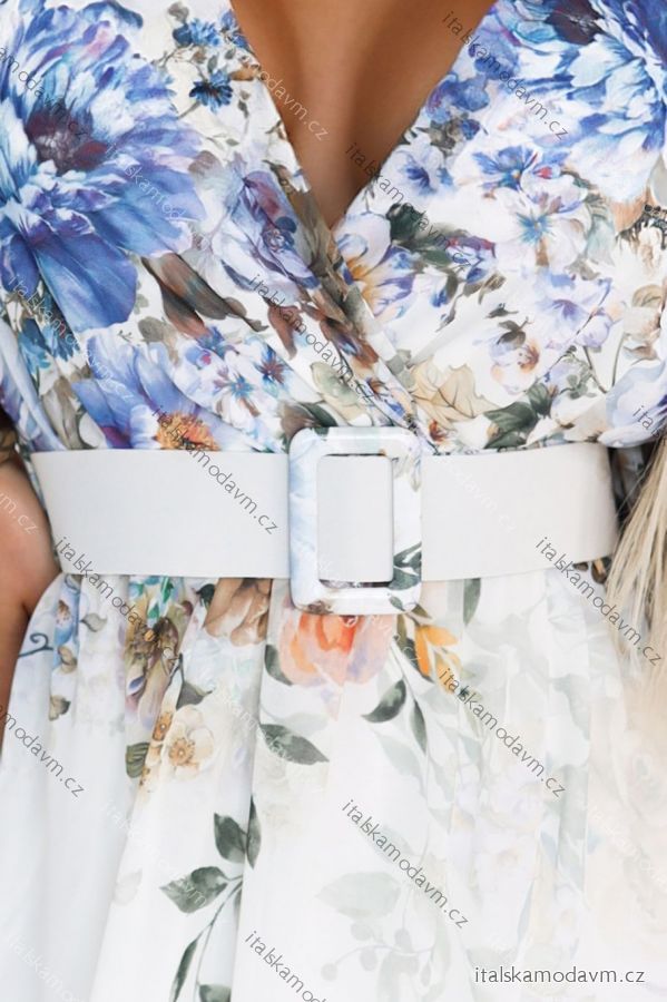 ZBOŽÍ (22987) > Oblečení dámské (18329) > Šaty (9717) > Šaty šifonové (241) > Šaty šifonové letní (138) > 613-1 CELINA Vzdušné maxi šaty s výstřihem do V, páskem a květinovým ombré vzorem - světle modré