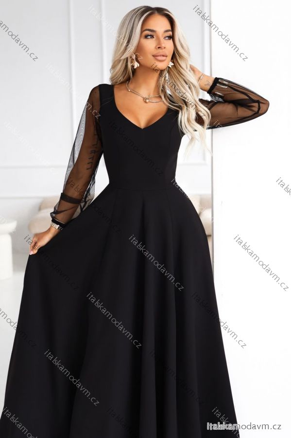 Elegantné čierne maxi šaty s tylovými rukávmi - zmyselná klasika od Numoco