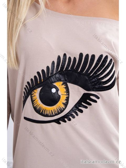 Béžová halenka s potiskem a delšími zády