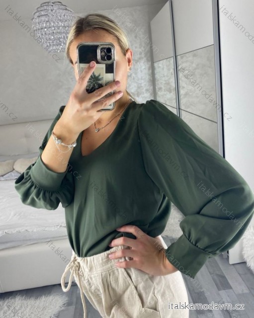 Blúzka dlhý rukáv dámska (S/M/L ONE SIZE) TALIANSKA MÓDA IMM24M10556/DR S/M/L zelená khaki