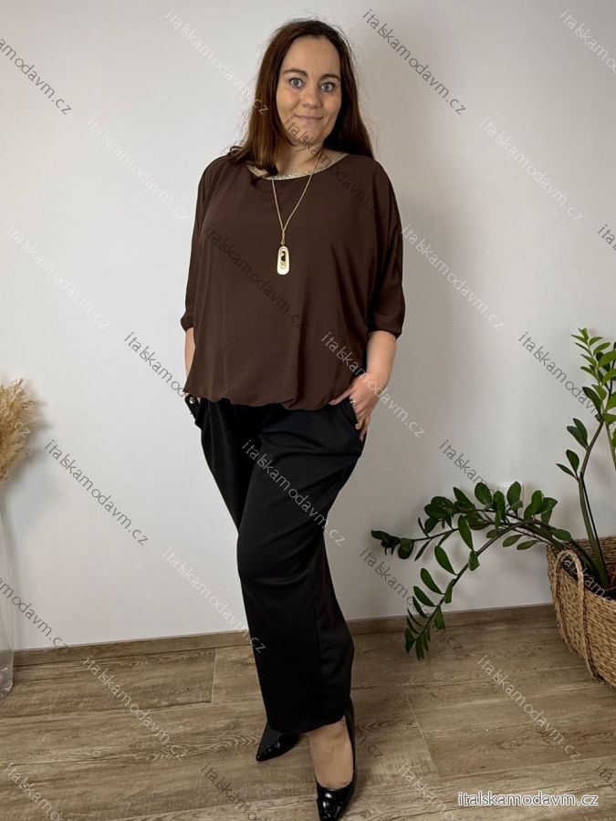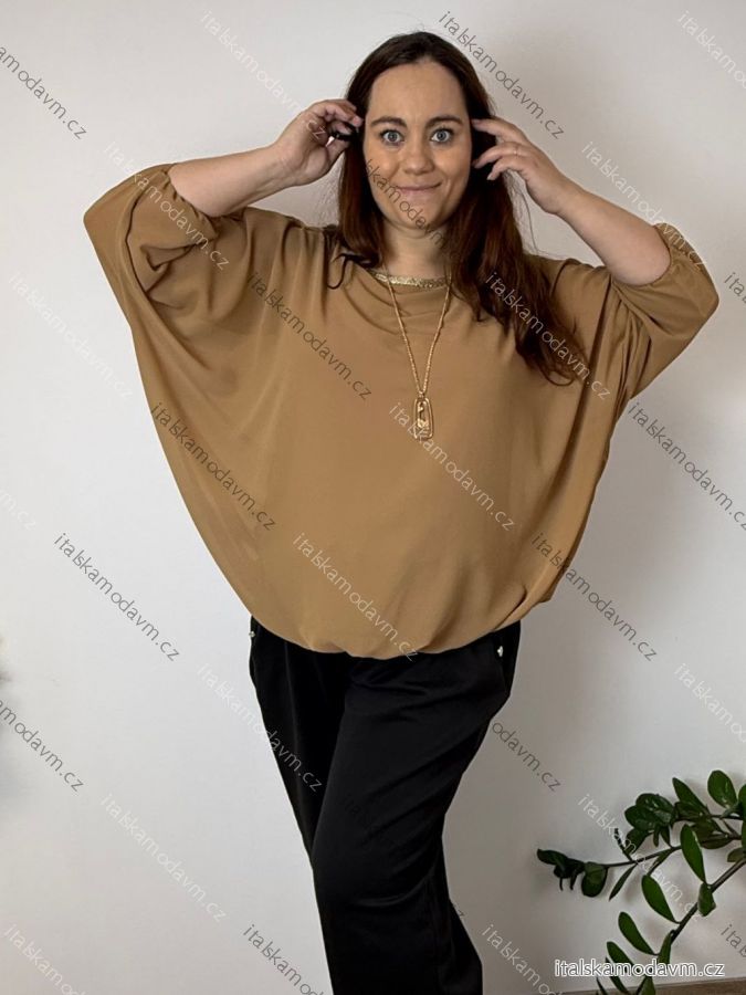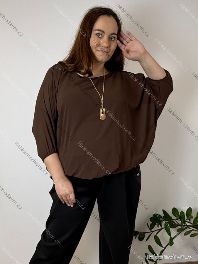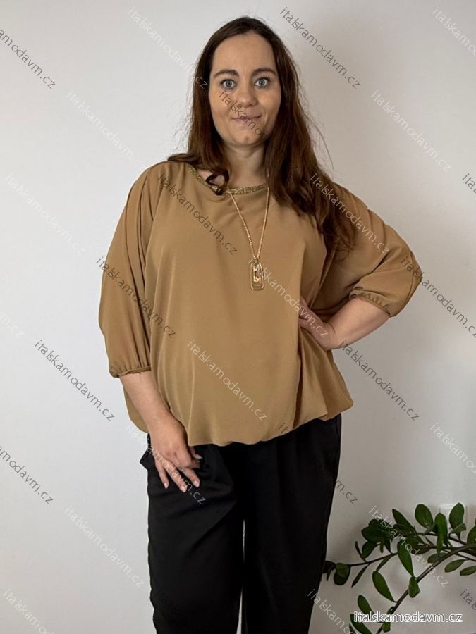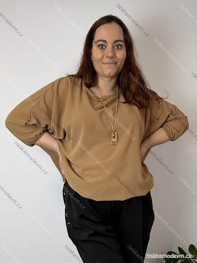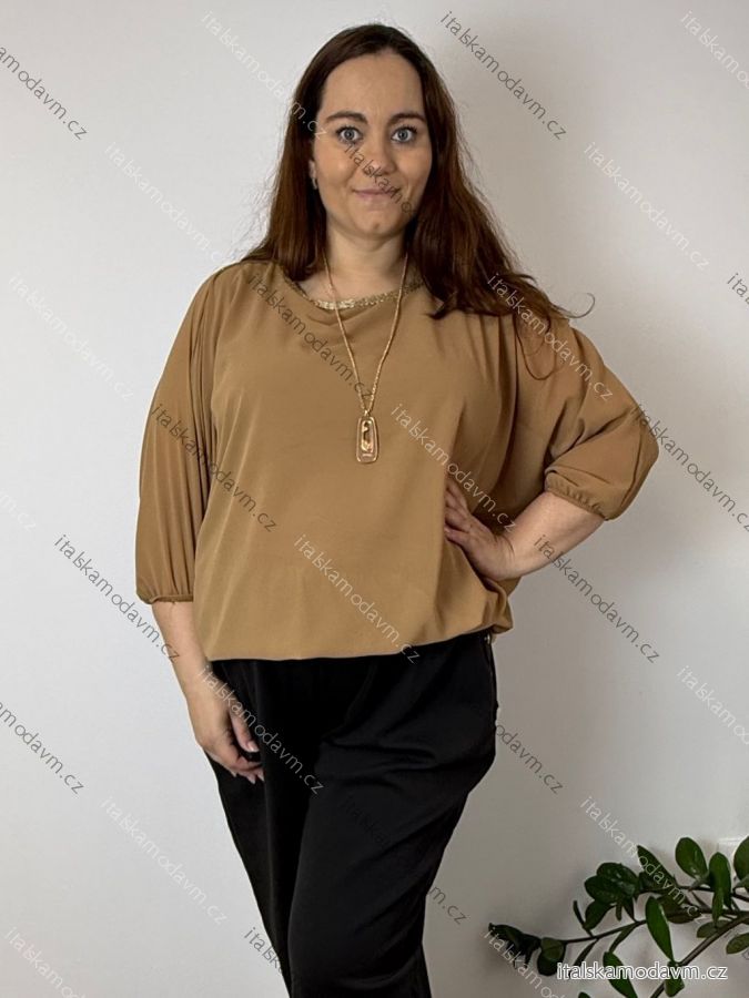 Blúzka elegantná s príveskom 3/4 dlhý rukáv dámska nadrozmer SIRENA (48/50/52 ONE SIZE) TALIANSKA MÓDA IMD26004/DU tmavo béžová