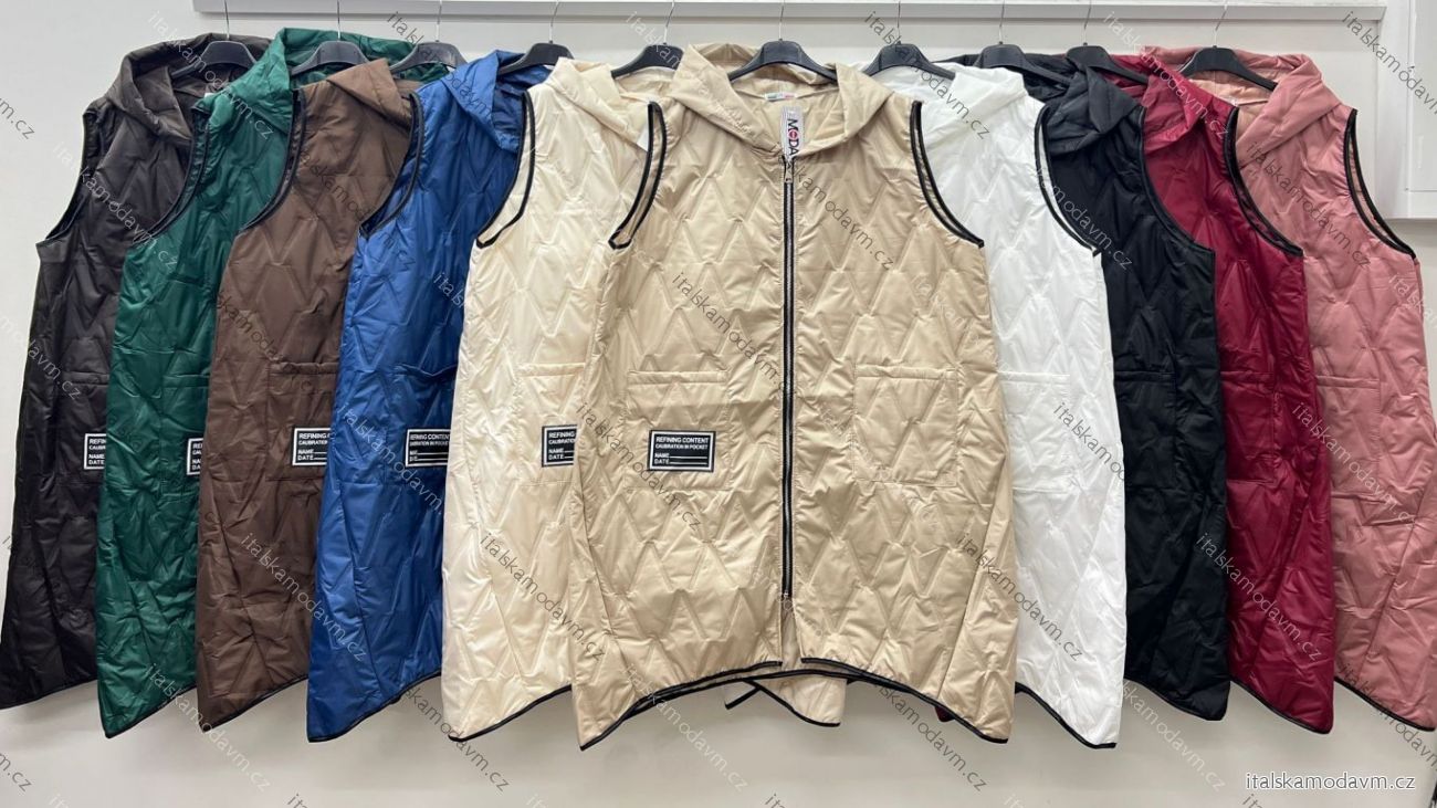 ZBOŽÍ (23736) > oblečenie dámske (18908) > Bundy, kabáty, vesty a saka (1249) > Bundy dámske (362) > Bundy jarné-jesenná (214) > Bunda jesenná s kapucňou na zips bez rukávu dámska nadrozmer (52/54/56 ONE SIZE) TALIANSKA MÓDA IM425533