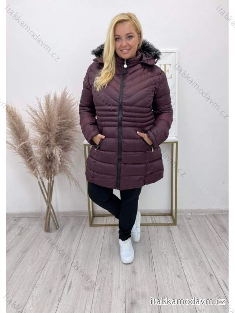 ZBOŽÍ (22895) > oblečenie dámske (18241) > šaty (9693) > Bunda/kabát s kapucňou dlhý rukáv dámsky nadrozmer (50-52, 54-56) TURECKá MóDA TMLBL223562 vínová 52