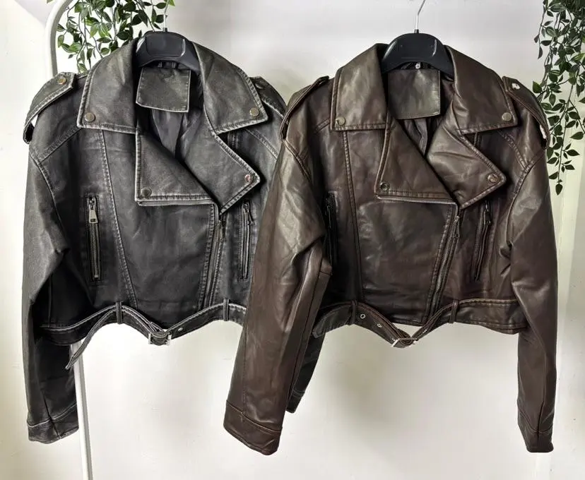 Bunda koženková dlhý rukáv dámska (S/M/L ONE SIZE) TALIANSKA MÓDA IMPLP2524170024