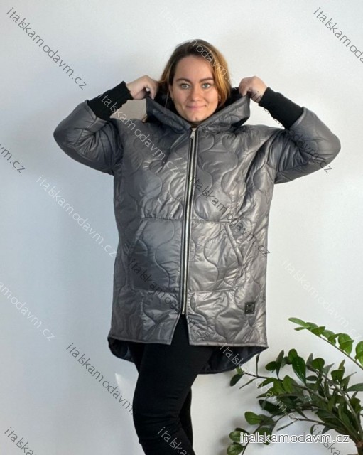 Bunda s kapucňou dámska nadrozmer (3XL/4XL ONE SIZE) TALIANSKA MÓDA IM423683/DUR šedá 3XL/4XL
