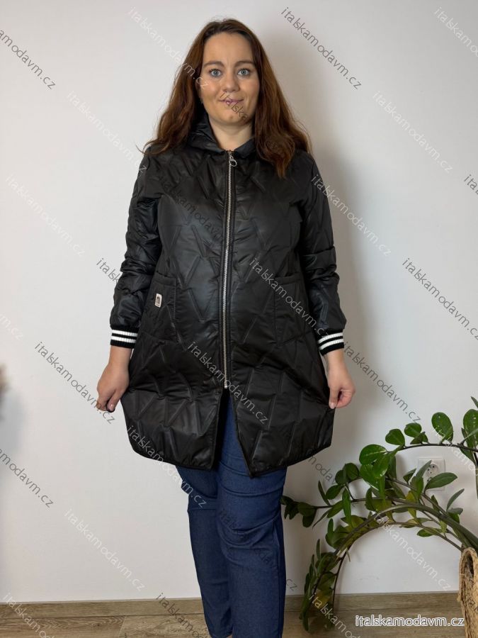 Bunda slabá šusťáková s kapucí na zip dlouhý rukáv dámská nadrozměr VIOLA (50/52/54 ONE SIZE) ITALSKÁ MÓDA IMD25175/DUR 50/52/54 Černá