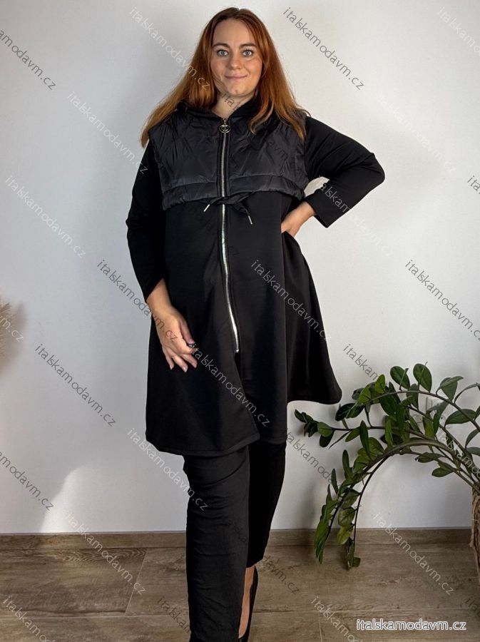 Bunda šusťáková s kapucí na zip dlouhý rukáv dámská nadrozměr NIKA (46/48/50 ONE SIZE) ITALSKÁ MÓDA IMC25415