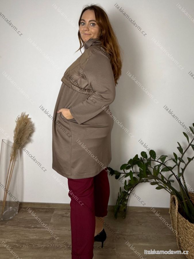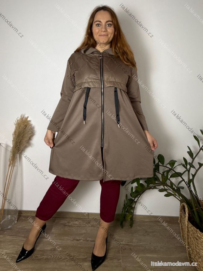 Bunda šusťáková s kapucí na zip dlouhý rukáv dámská nadrozměr NIKA (46/48/50 ONE SIZE) ITALSKÁ MÓDA IMC25415/DUR 46/48/50 Černá