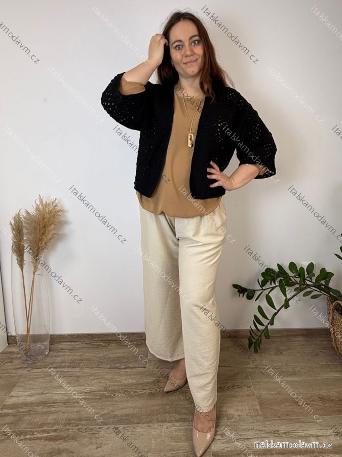 ZBOŽÍ (21935) > Cardigan krátký 3/4 rukáv dámsky nadrozmer (48/50/52 ONE SIZE) TALIANSKA MÓDA IMSM260028/DU čierna