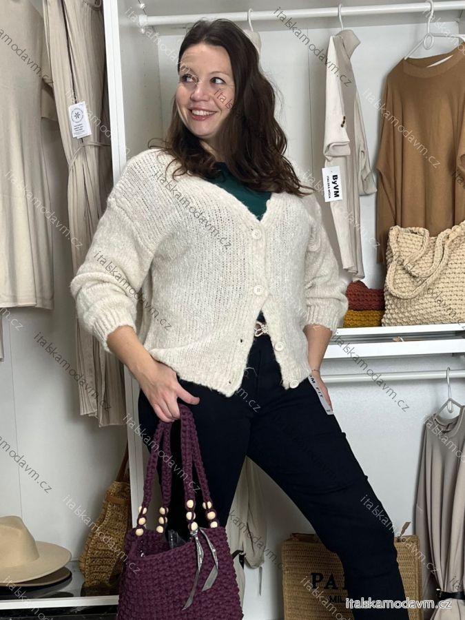Cardigan krátký na knoflík dlhý rukáv dámsky MERYL (S/M/L ONE SIZE) TALIANSKA MÓDA IMWGB251111/DU S/M/L sv. béžová
