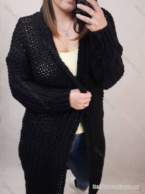 ZBOŽÍ (22833) > Cardigan pletený dlhý rukáv dámsky nadrozměr (2XL / 3XL ONE SIZE) TALIANSKÁ MÓDA IM821026 čierna