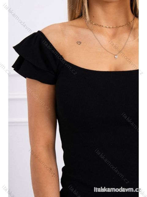 Predstavujeme vám módne šaty. Šaty majú na ramenách riasenie. Šaty z rebrovaného materiálu. Šaty sú vyrobené z kvalitného materiálu. Veľkosť je univerzálna a bude vhodná pre dámy, ktoré nosia veľkosti S, M alebo L.