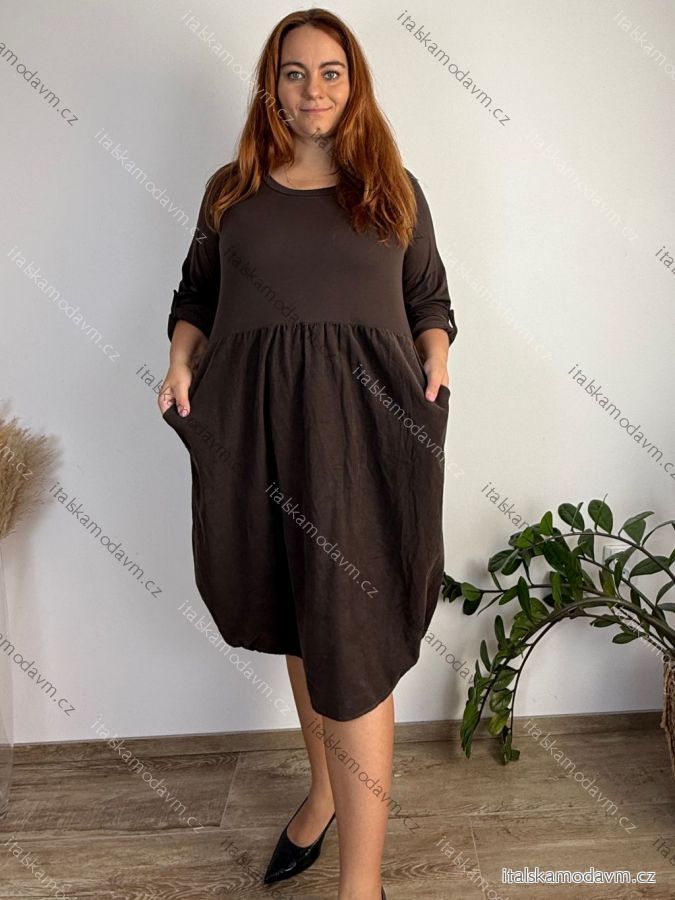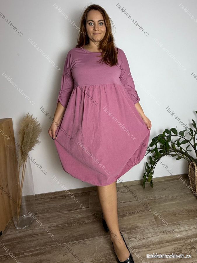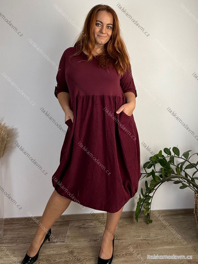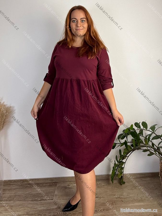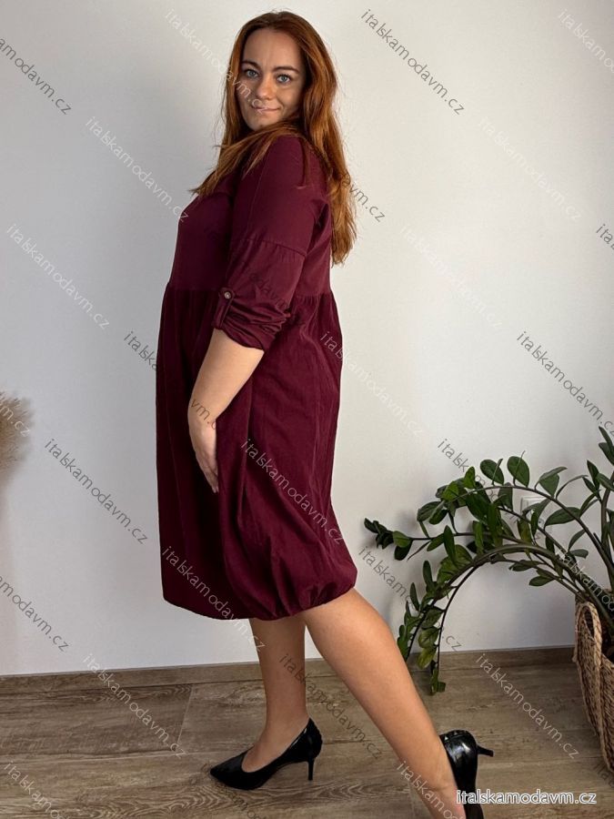 ZBOŽÍ (21974) > Dámské nadměrné šaty WENDY s manšestrovou sukní a dlouhým rukávem (50/52/54 ONE SIZE) ITALSKÁ MÓDA IM425540/DUR 50/52/54 vínová