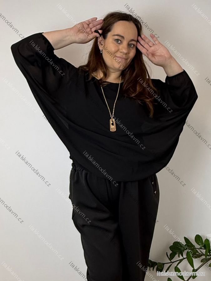 Halenka elegantní s přívěskem 3/4 dlouhý rukáv dámská nadrozměr SIRENA (48/50/52 ONE SIZE) ITALSKÁ MÓDA IMD26004/DU 48/50/52 Černá