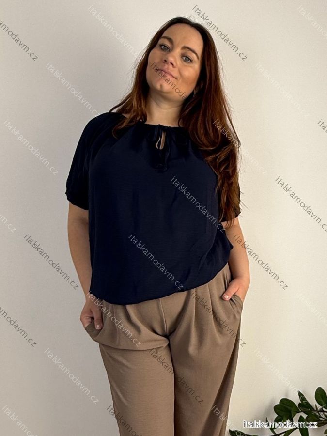 ZBOŽÍ (22237) > Halenka krátký rukáv dámské nadrozměr PRUE (50/52/54 ONE SIZE) ITALSKÁ MÓDA IM426075/DUR 50/52/54 tmavě modrá
