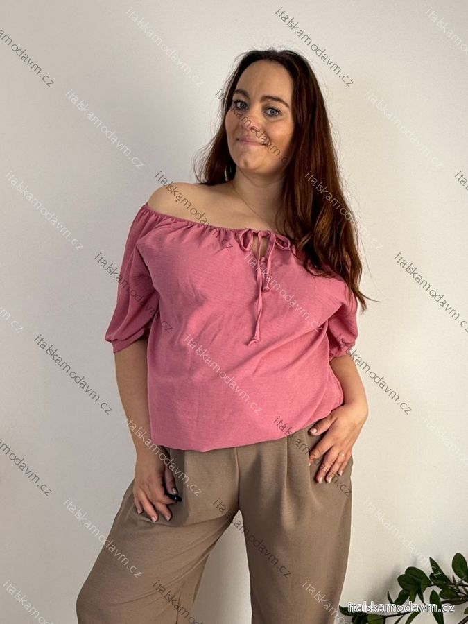 ZBOŽÍ (22229) > Halenka krátký rukáv dámské nadrozměr PRUE (50/52/54 ONE SIZE) ITALSKÁ MÓDA IM426075/DUR 50/52/54 růžová starorůžová